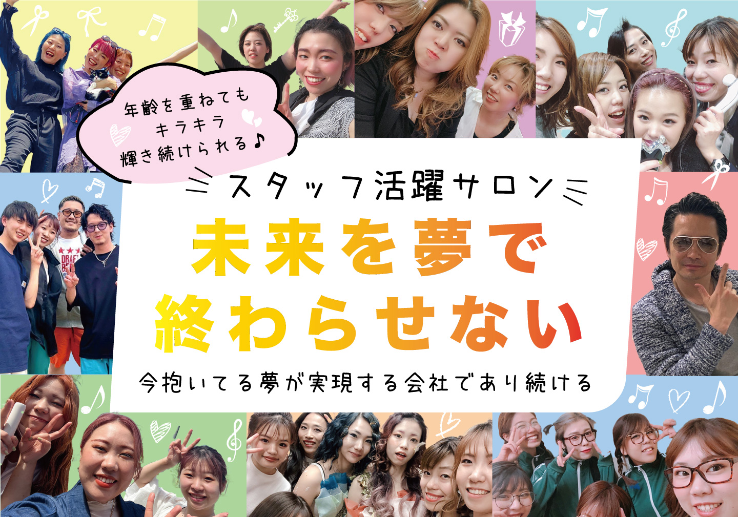 鈴蘭台は、スタッフが安心して長く成長できる場所づくりを大切にしています。撮影会やヘアショーなど、クリエイティブな場にも挑戦できるチャンスが豊富で、若手からベテランまで刺激し合いながら日々アップデートできる環境です 。また、プライベートや家庭との両立も応援していて、社会保険完備や柔軟な働き方で、ワークライフバランスを大切にできます 。